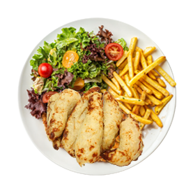 2 Viandes au choix. Servie avec pain maison.