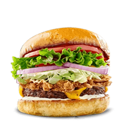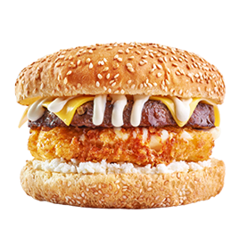 Steak 90g, poulet pané, cheddar.