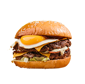 2 Steaks 180g, oeuf, bacon grillé, cheddar