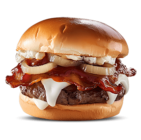 Steak 90g, bacon, oignons caramélisés.